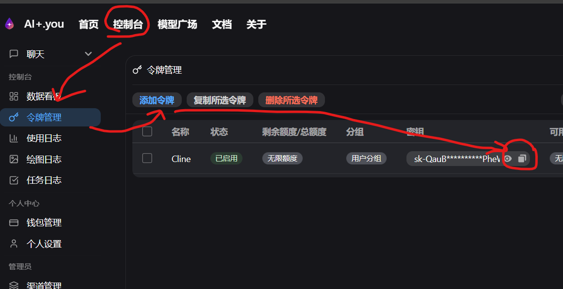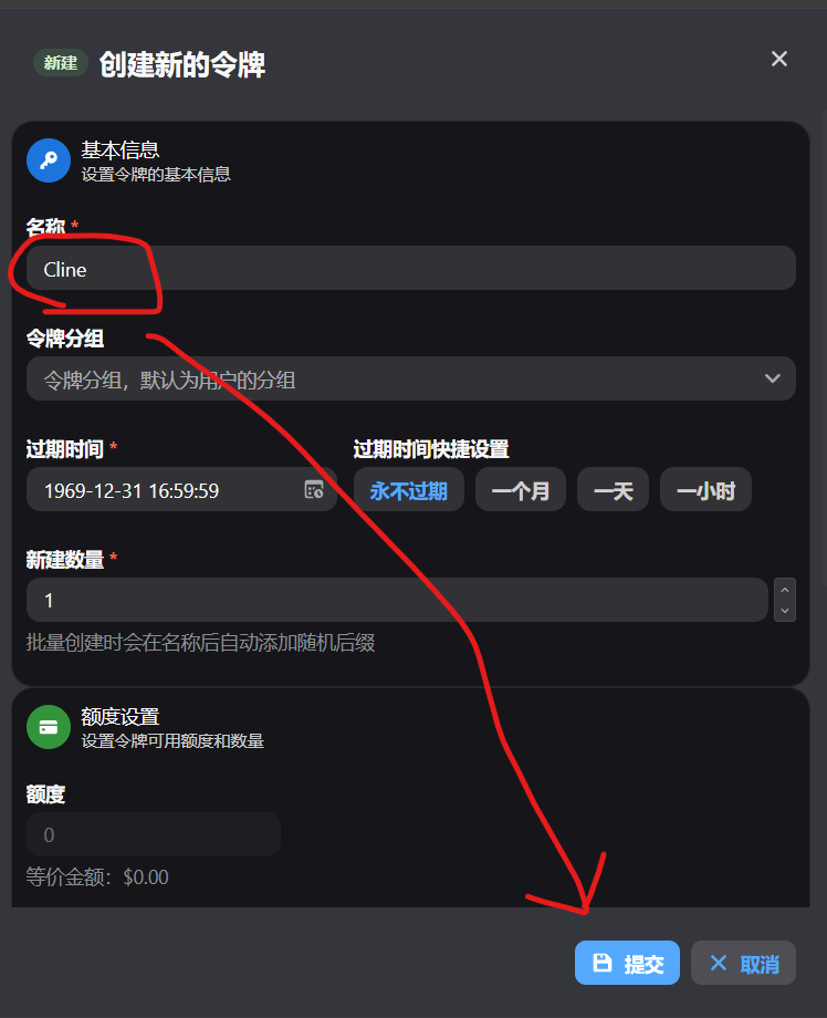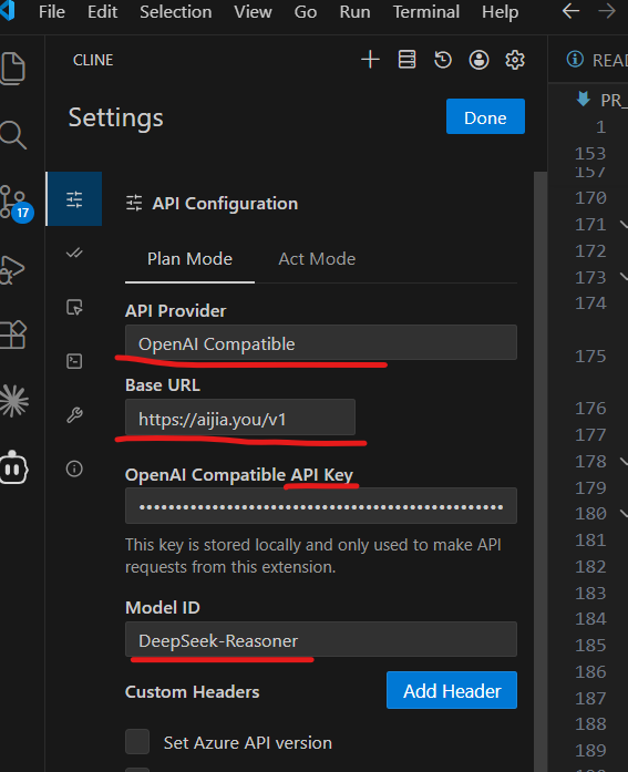 Cline 的接入很简单(图中用红线划出了要填的空):